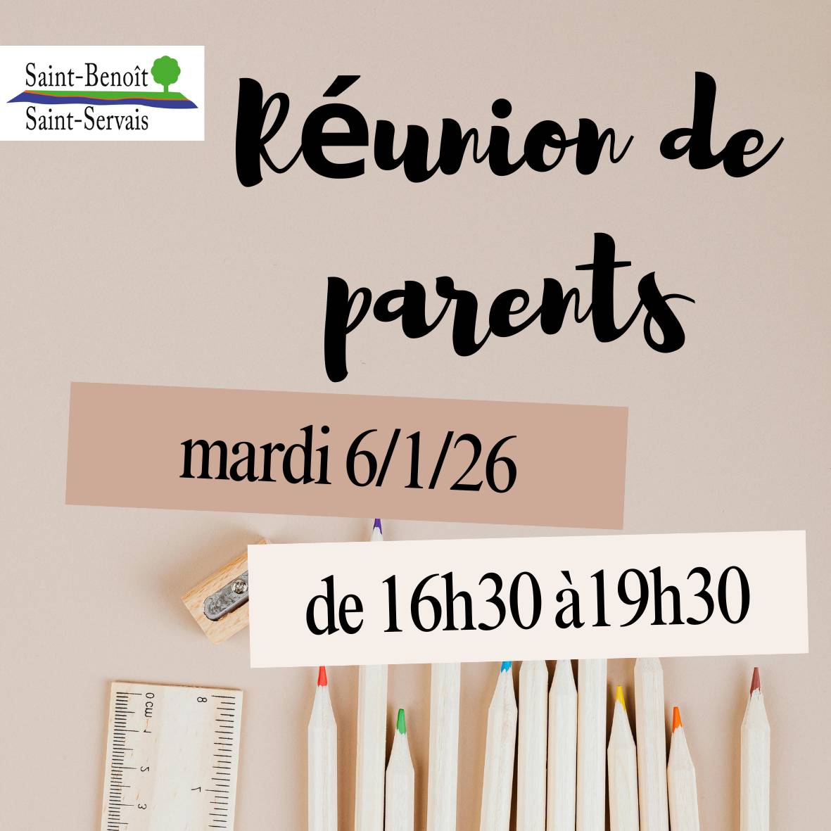 La réunion de parents se déroulera le mardi 6 janvier entre 16h30 et 19h30.